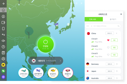 메인화면에서 연결시작 버튼을 누르면 즉시 빠른 VPN접속이 가능합니다.